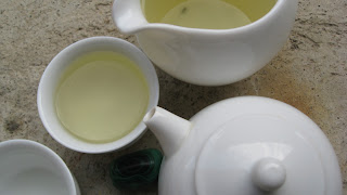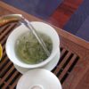 I usually brew this tea like other chinese green teas, in a zhong or glass, but today, I’m going to prepare it in a little porcelain tea pot. No matter the way you choose to brew LSYW, it always seems a bit strong in the first place. But it reveals in the second place, a sweet and soft fruity taste. The texture is velvety and soothing, almost like maple sirup or something like that. It seems the after-taste can last for ever, if you don’t eat anything else after. Speaking of eating, LSYW is great associated with coconut custard tart (made from coconut milk). You can brew the same leaves quite a couple of times, which is not always the case with before Qing Ming green teas.